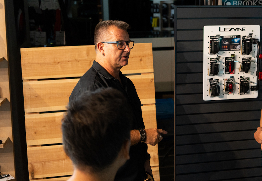 先日LEDワールドツアーと題した、Y17の新型LEDのプレゼンにLezyne創業者であるミッキーが来日。