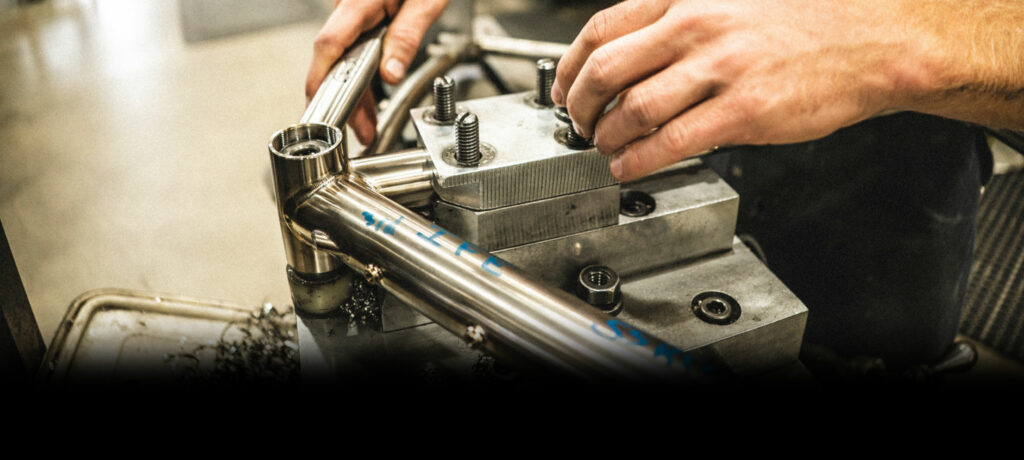 MOOTSの熟練したCNCチームは、才能を発揮し、あなたの新しいMootsに入るヘッドチューブを刻印します。