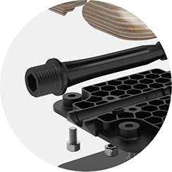 これも部品を追加することなくロードベアリングシェルに組み込まれています。衝突時には、ペダル軸の外側にある4つの溝が、余分な力を広い面積で均等に分散させ、衝撃を和らげます。