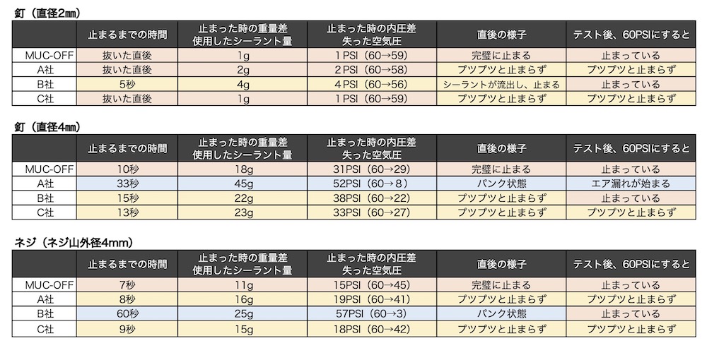 粘度の高いラテックスベースのシーラント液と大小様々な粒子が空いた穴から瞬時に飛び出し穴を塞ぎます。