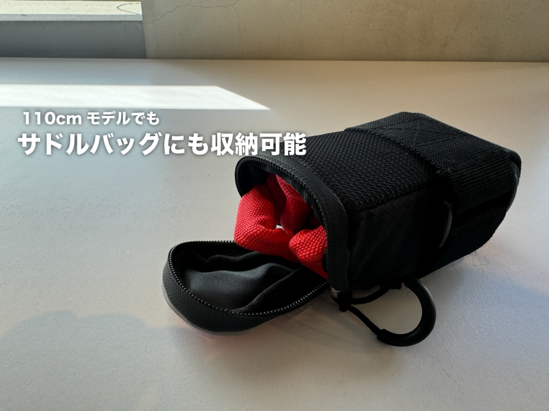 4mmチェーンと360g(110cmモデル)の軽量さでコンパクトに持ち運び可能。