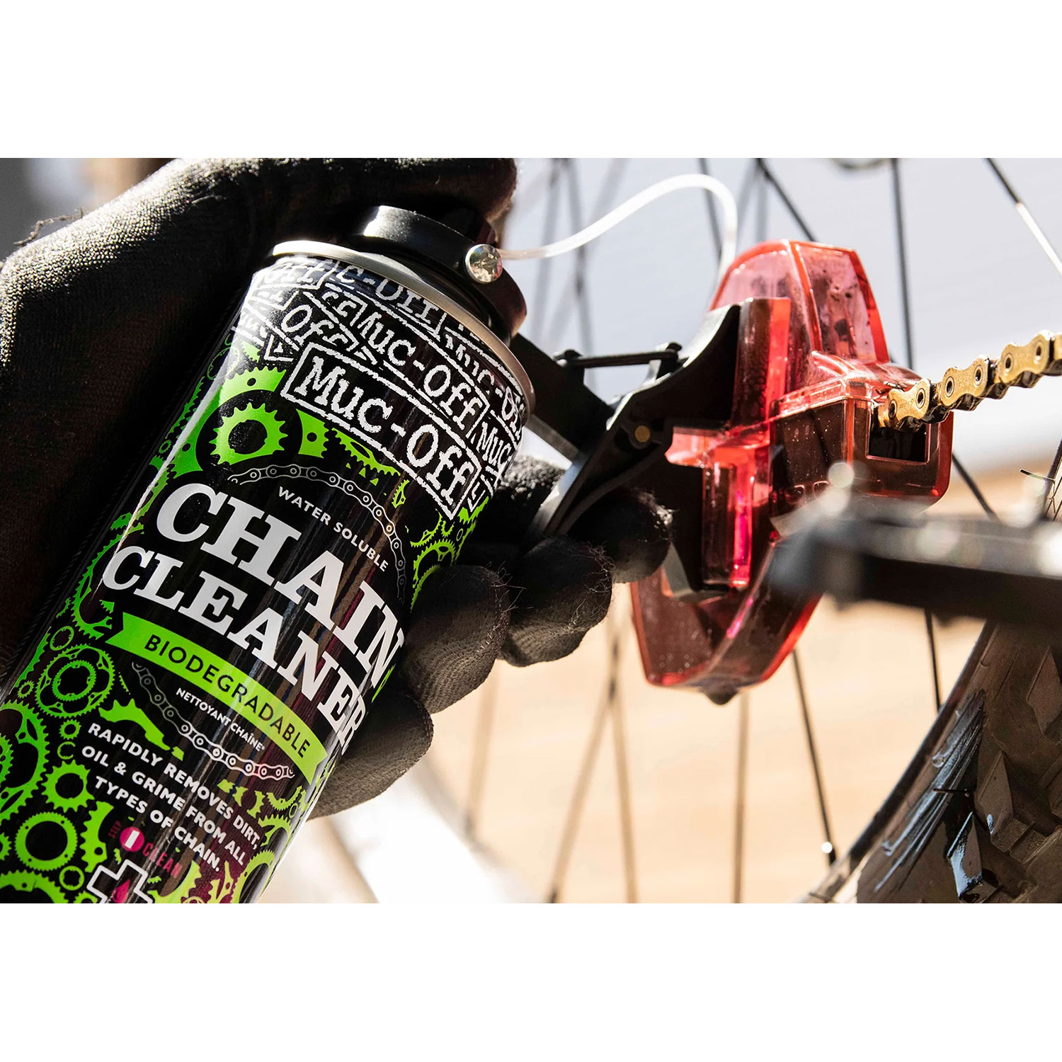 チェーンクリーナーのヘッドに洗浄マシーンがセットされたチェーンクリーニングマシン