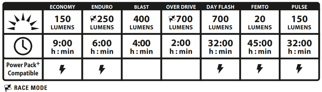 | ■ 最長ランタイム: 36時間(FEMTOモード・20ルーメン) |