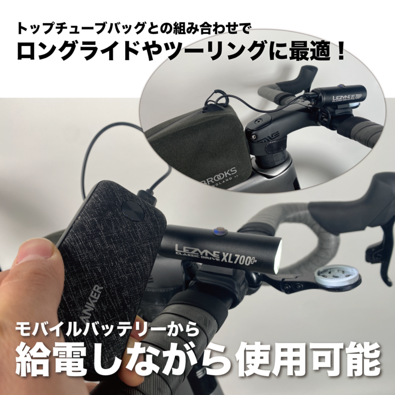 万が一充電がなくなったとしても、モバイルバッテリーから給電可能なので、充電時間を待たずにライドを続けられます。