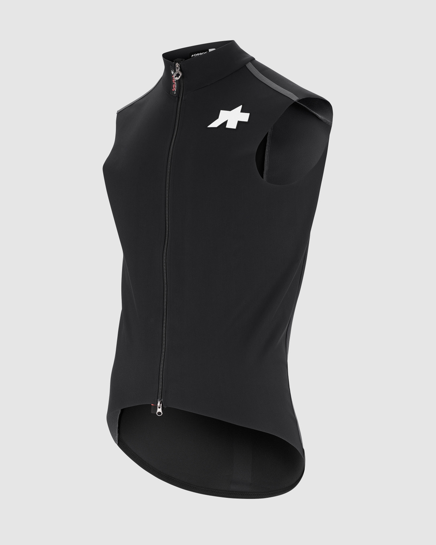 EQUIPE RS SPRING FALL GILET TARGAは、裾と袖をローカット(切りっぱなし)加工してエアロダイナミクスを高め、重ね着してもかさばらないデザイン。