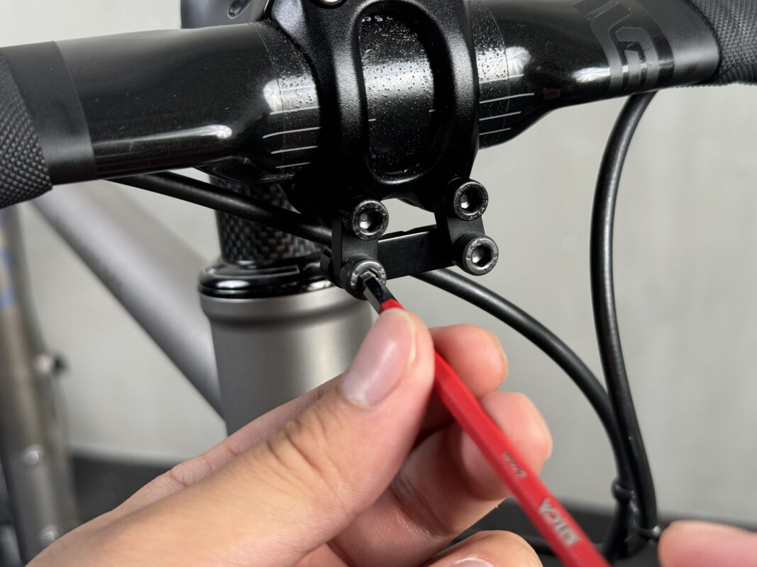 ステムのボルトの2本を交換して固定するので、常にハンドルのセンターにLEDを装着することができます。