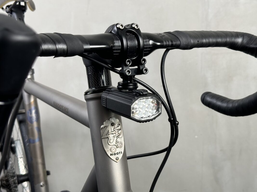 ステム上側に取り付けることで、バッグを避けながら前方を照らすことができます。