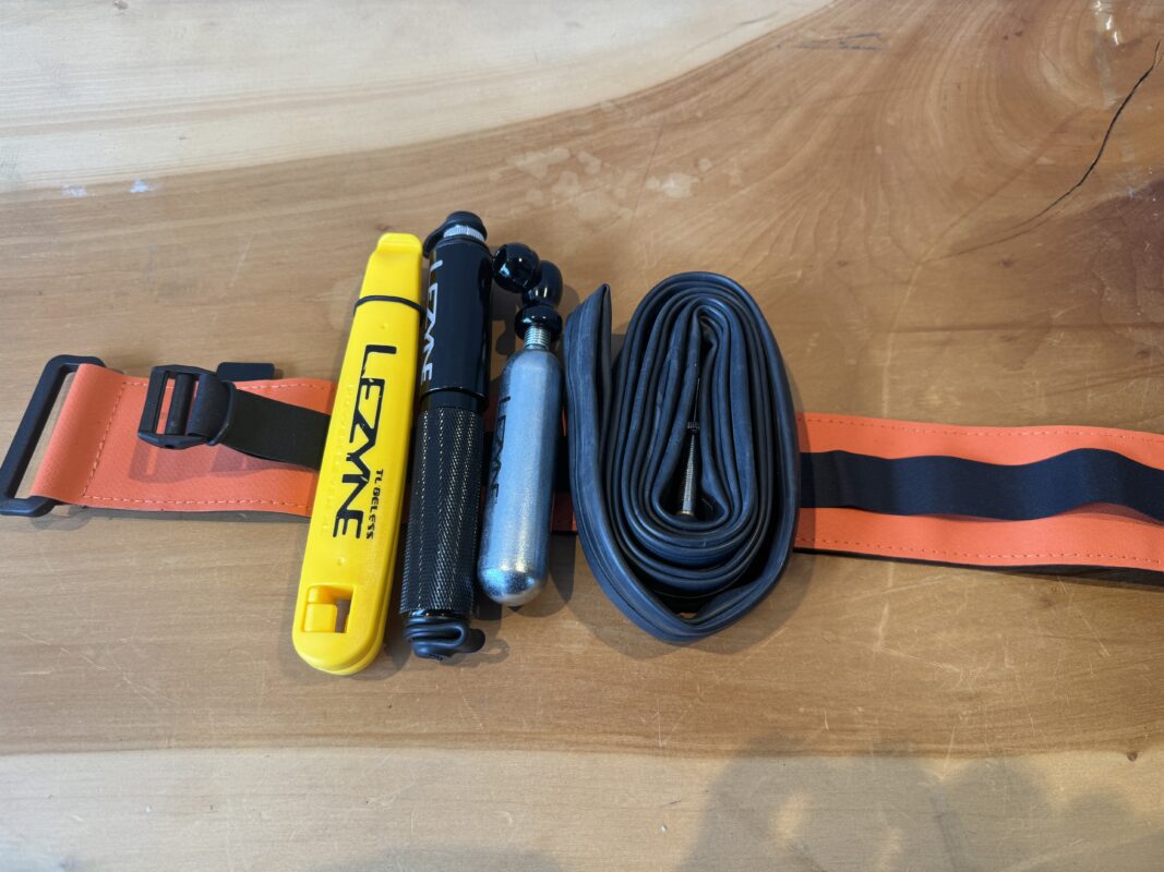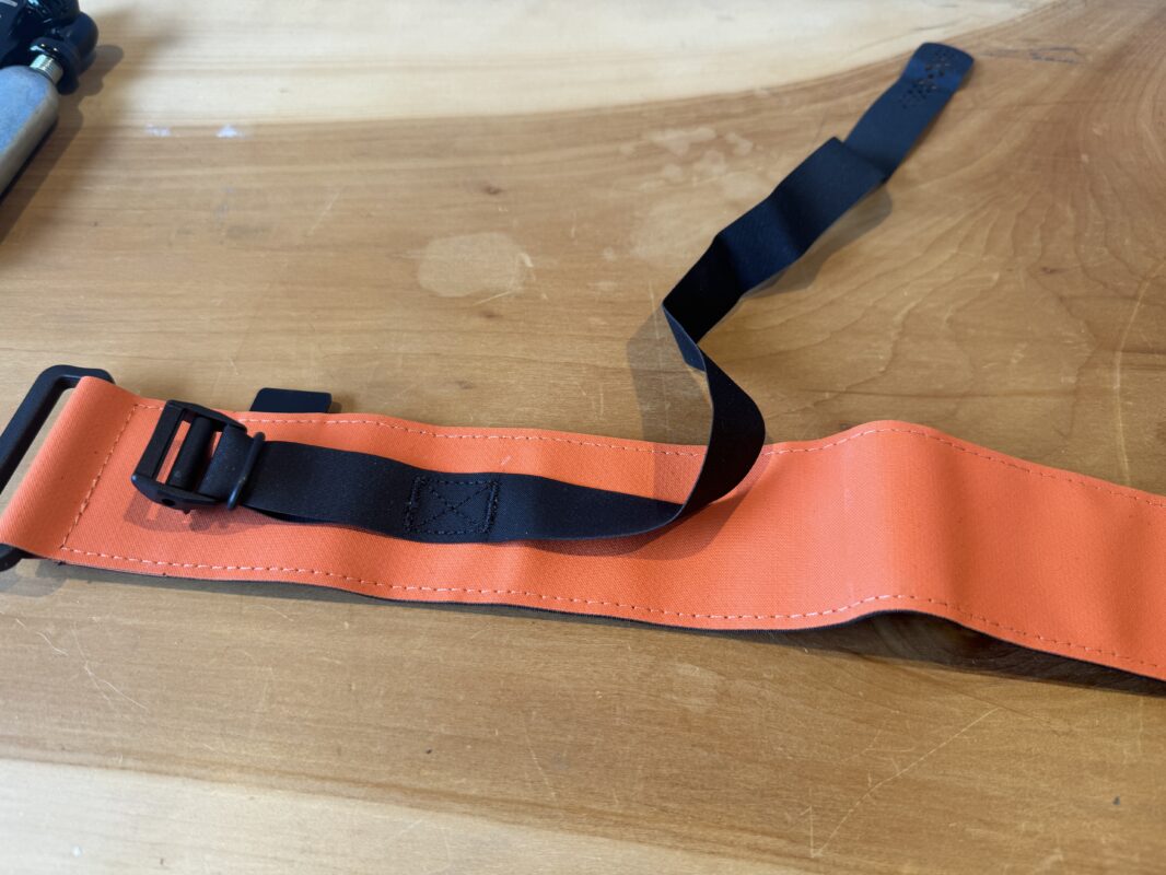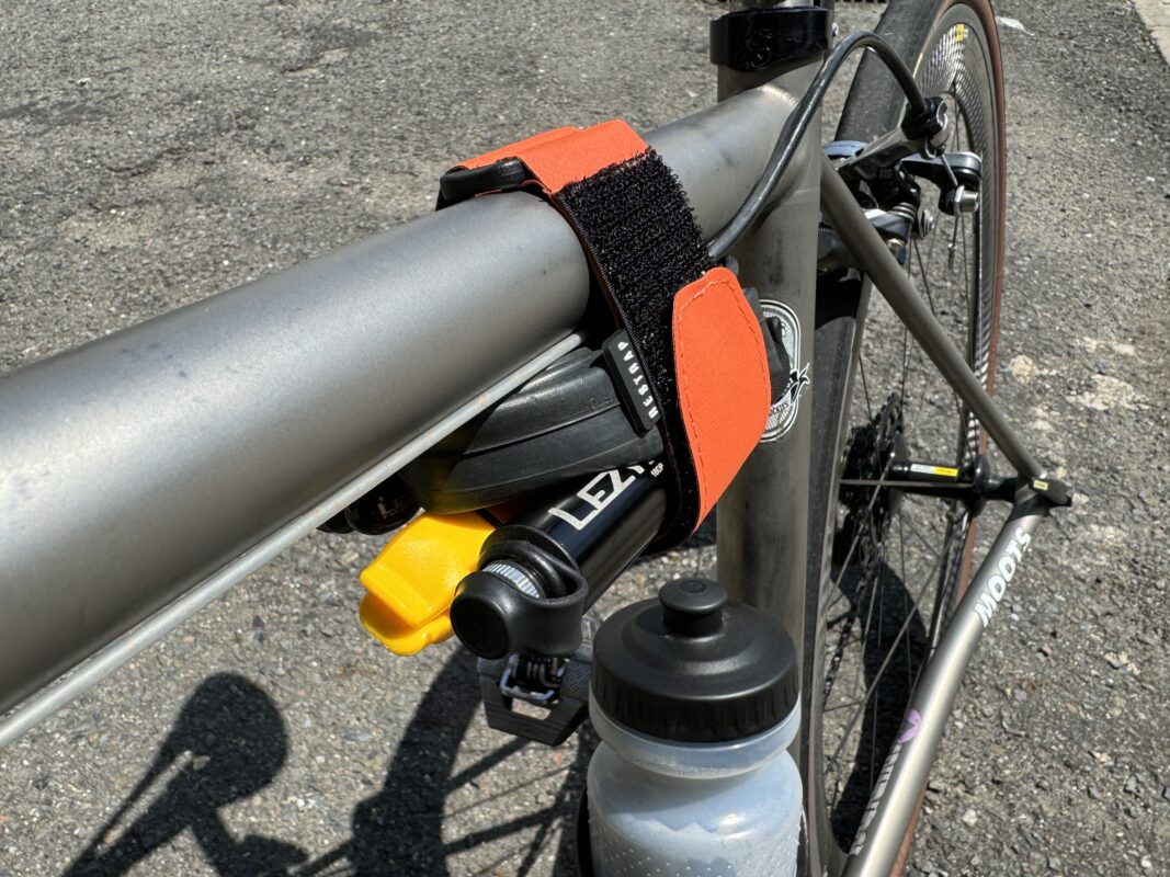 チューブやハンドポンプなどサイクリングに必要なアイテムをしっかり巻けるストラップ