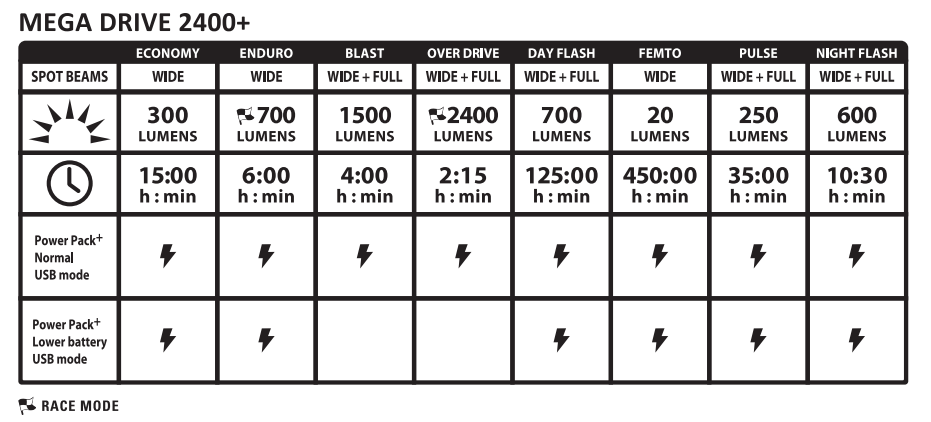 | ■ 最長ランタイム: 450時間(FEMTOモード・20ルーメン) |
