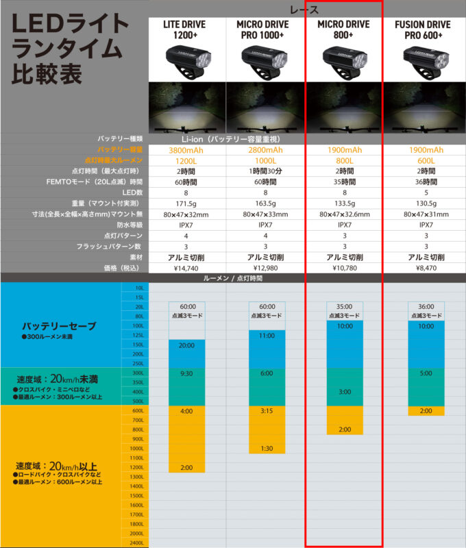 サイズは同じ、明るさとバッテリーランタイムが異なるモデルをラインナップ