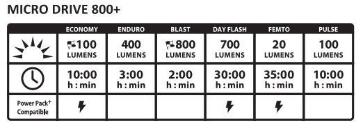 | ■ 最長ランタイム: 35時間(FEMTOモード・20ルーメン) |