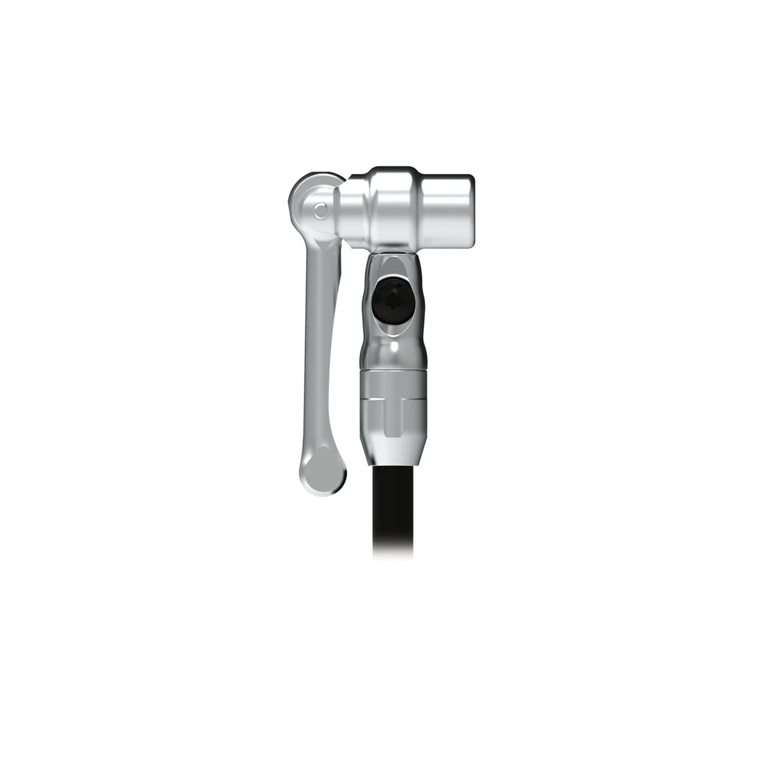 人間工学に基づいたスリムなアルミ製レバーを上げてPresta Pro Head をバルブ固定することでしっかりと密着し、高圧でも高空気流量でも安心して空気を充填することが出来ます。