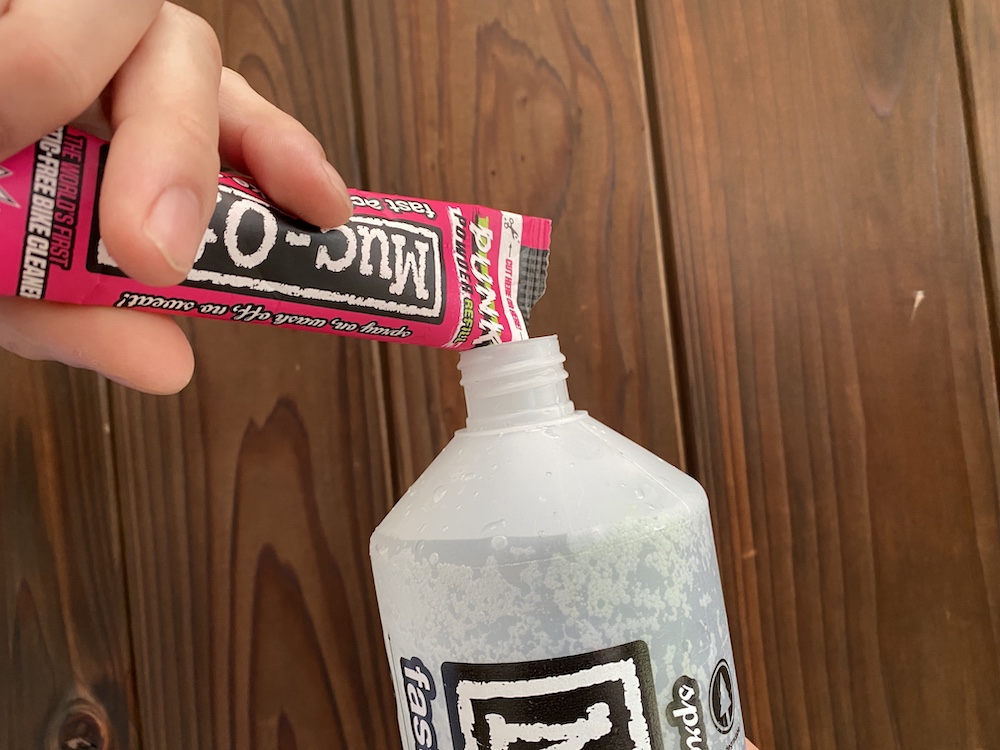 NANO TECH BIKE CLEANERのボトルや1Lのボトルに溶かすことで水さえあればどこでもバイククリーニングが可能です。