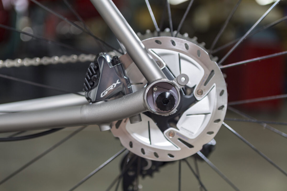 MOOTS独自の6/4チタン3Dプリントフラットマウントディスクマウントが完璧なリアホイールとブレーキのアライメントを実現。