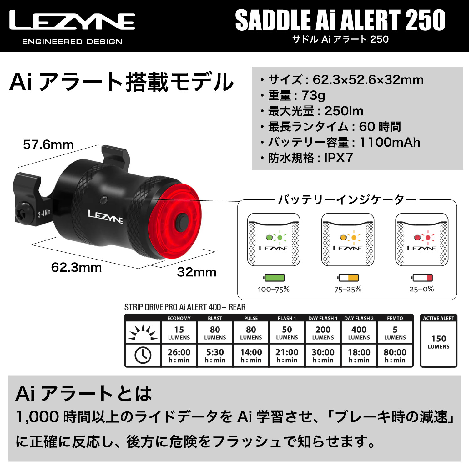 商品コード: 57-3502700002 カテゴリー: リヤライト, LEZYNE レザイン, ライト