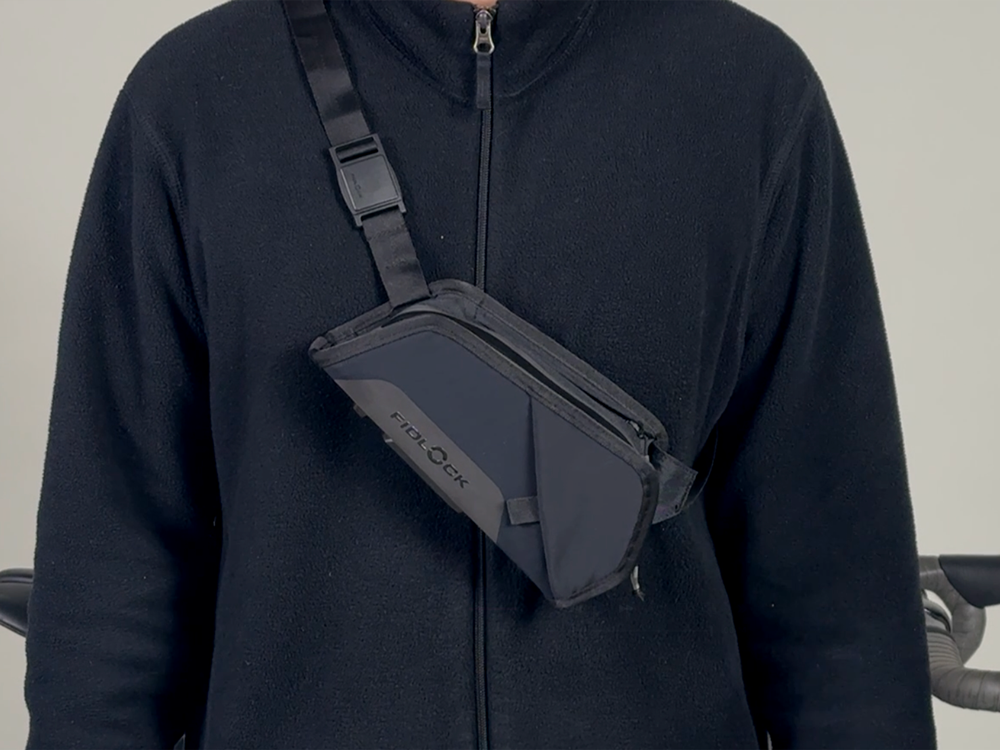 TWISTマウントでバイクへ固定。収納されているストラップを引き出せばボディバッグとしても使用可能。