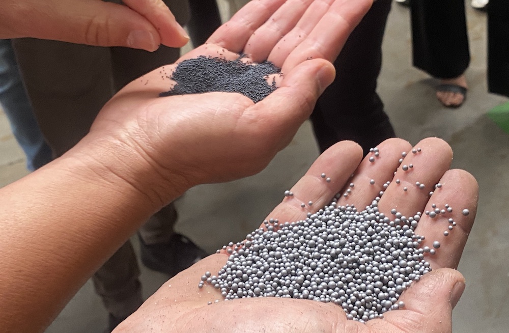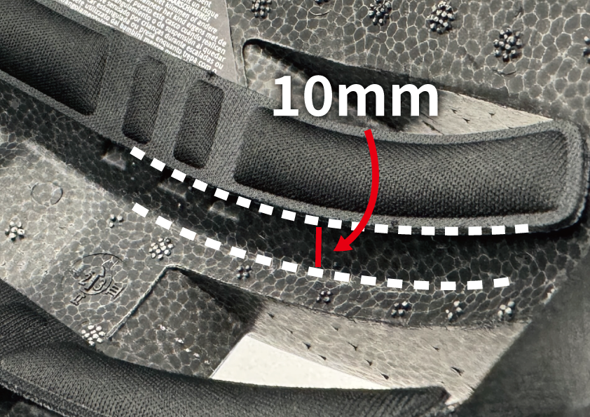 ヘルメットのインナーシェルは通常、EPSの大きい粒子と小さい粒子の組み合わせで作られます。